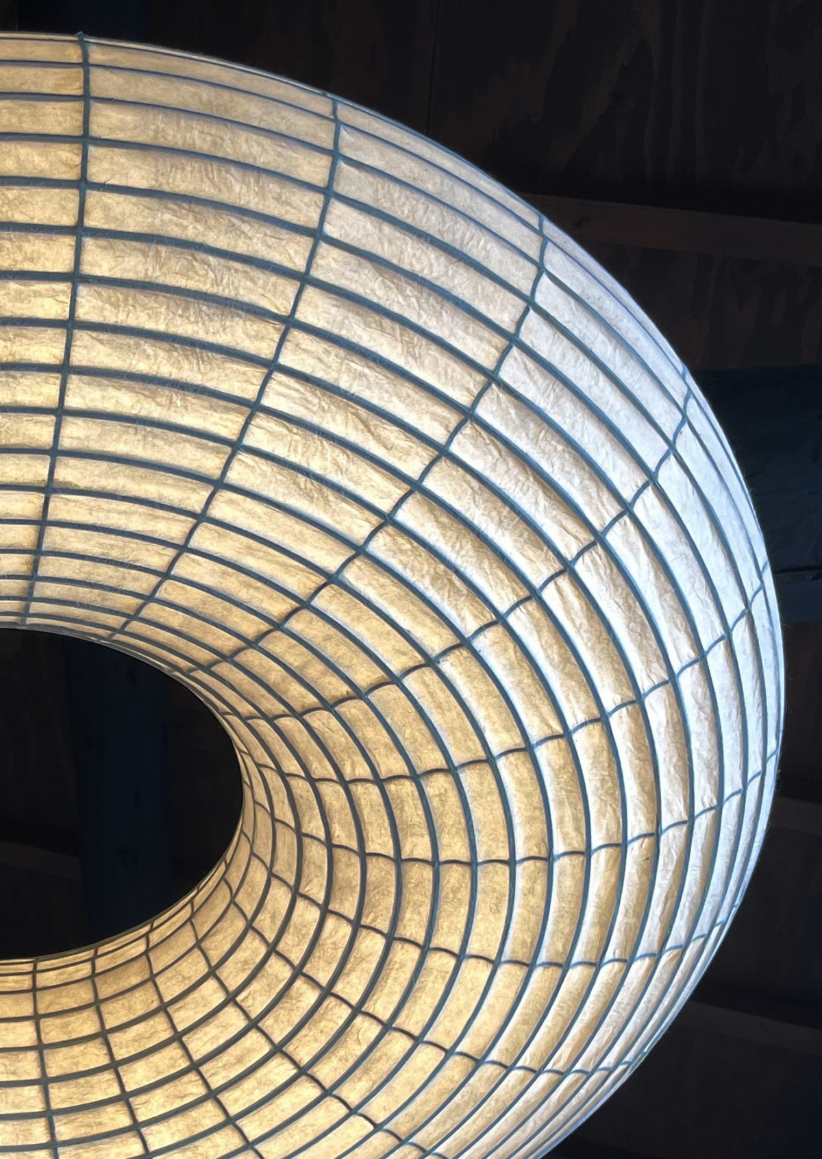 VORTEXペンダントライトは、熟練の技で作られた美しい手作り和紙を使用しており、クラシックな明かり提灯を現代的でモダンな解釈を表現しています。この紙は、「和紙」と呼ばれ、京都北部のきらめく山の清流で今も手間と時間をかけ手作りで生産されています。複雑な骨組みに取り付けられたこの和紙のスピリチュアルな質感は、どんな空間にも豊かさをもたらしエレガントな雰囲気を醸し出します。